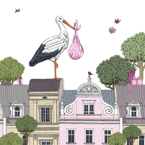 Opakowanie Karnet Swarovski kwadrat Narodziny dziewczynka bocian