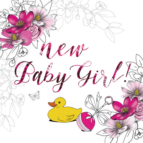 Opakowanie Karnet Swarovski kwadrat Narodziny dziewczynka kwiaty