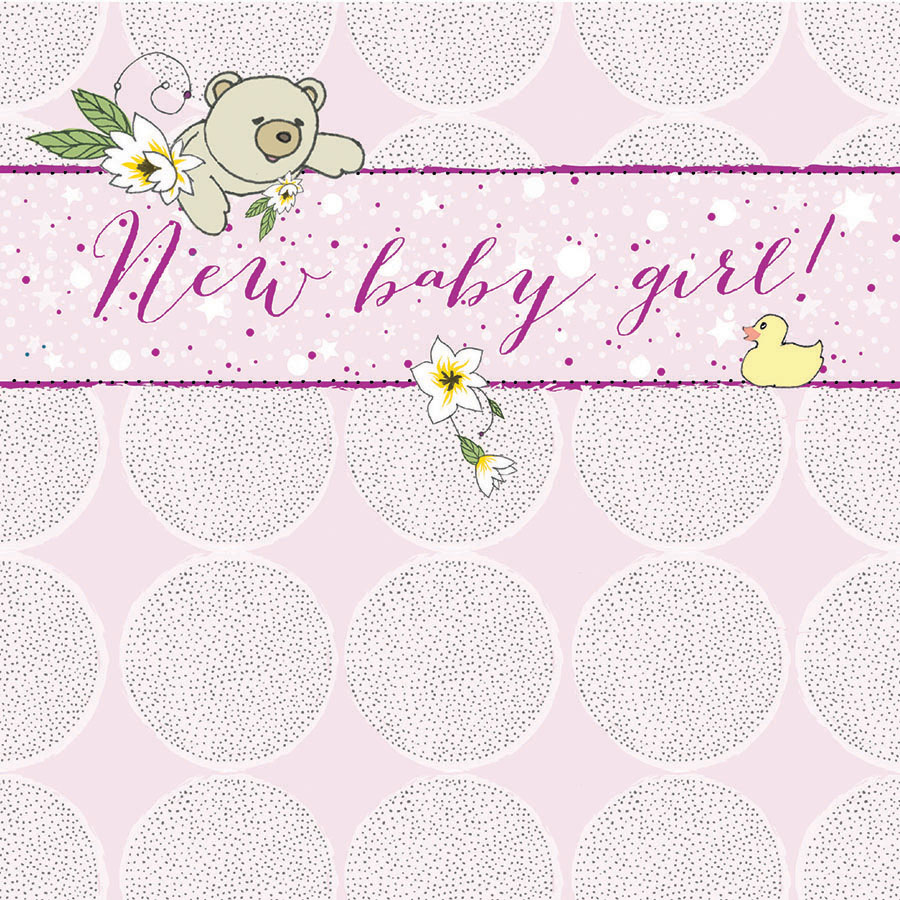 Karnet Swarovski kwadrat Narodziny miś dziewczynka
