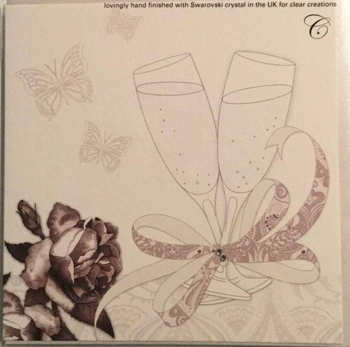 Karnet Swarovski kwadrat "ślub - kieliszki"