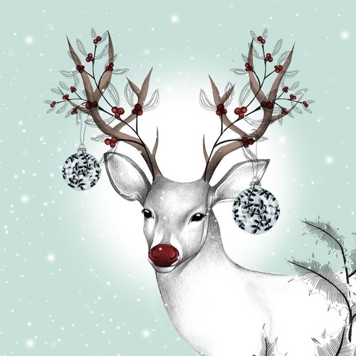 Opakowanie Karnet Swarovski kwadrat Święta Biały renifer
