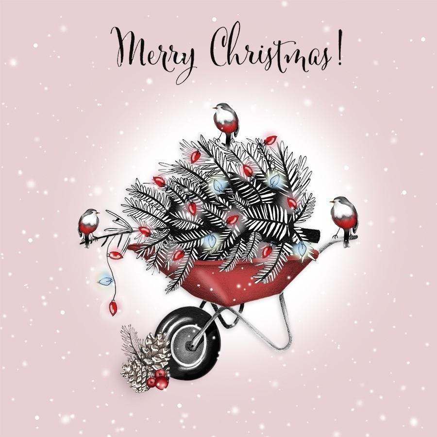 Karnet Swarovski kwadrat Święta Choinka na taczce Napis