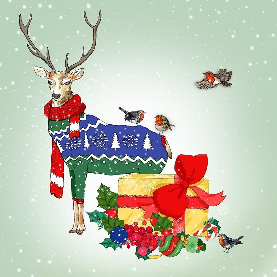 Opakowanie Karnet Swarovski kwadrat Święta Prezenty renifer