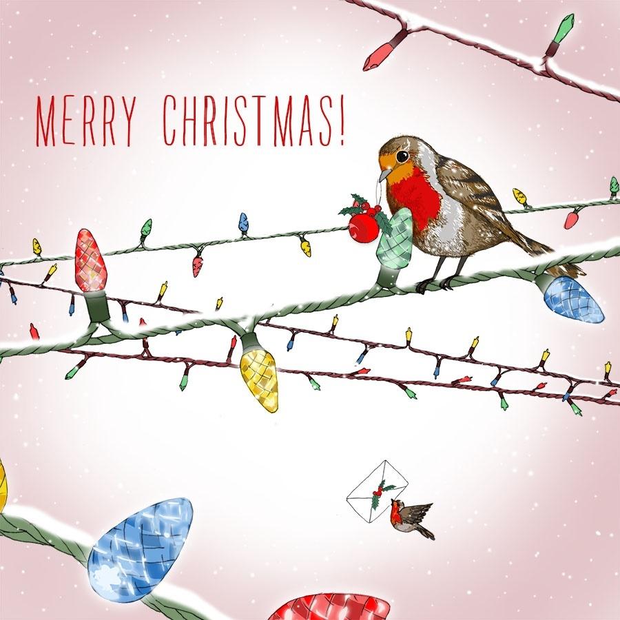 Karnet Swarovski kwadrat Święta Ptaszek na lampkach Napis