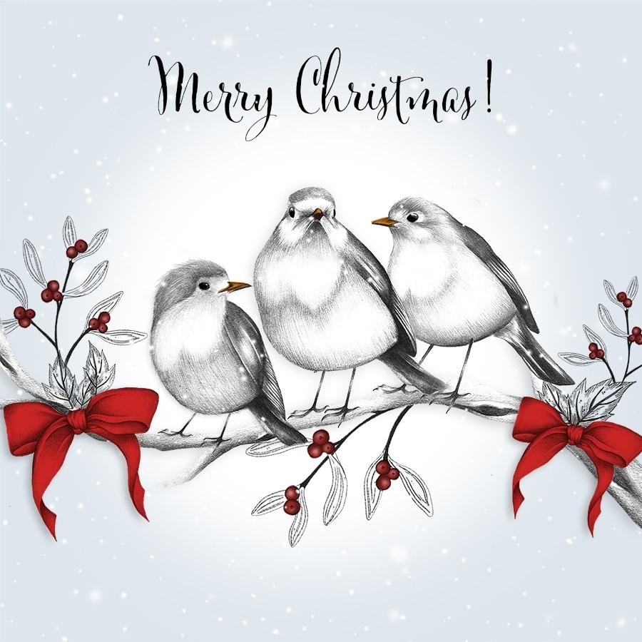 Karnet Swarovski kwadrat Święta Ptaszki na gałęzi Napis