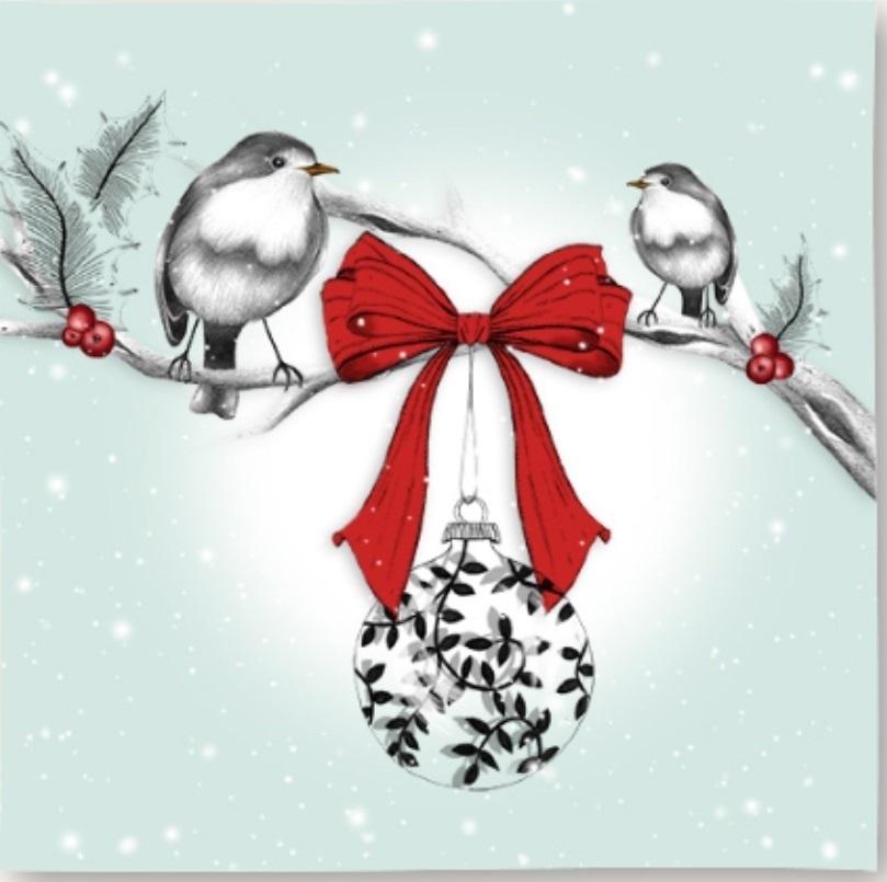 Opakowanie Karnet Swarovski kwadrat Święta Ptaszki z kokardą