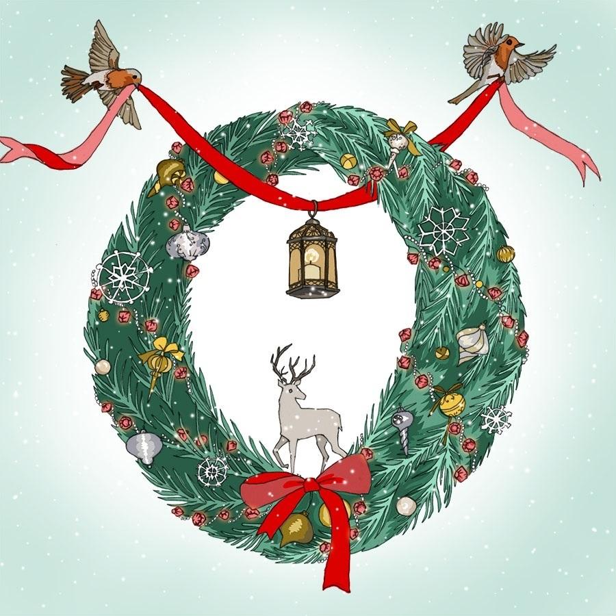 Opakowanie Karnet Swarovski kwadrat Święta Wieniec z lampionem