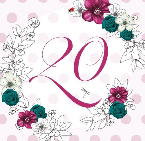 Opakowanie Karnet Swarovski kwadrat Urodziny 20 kwiaty
