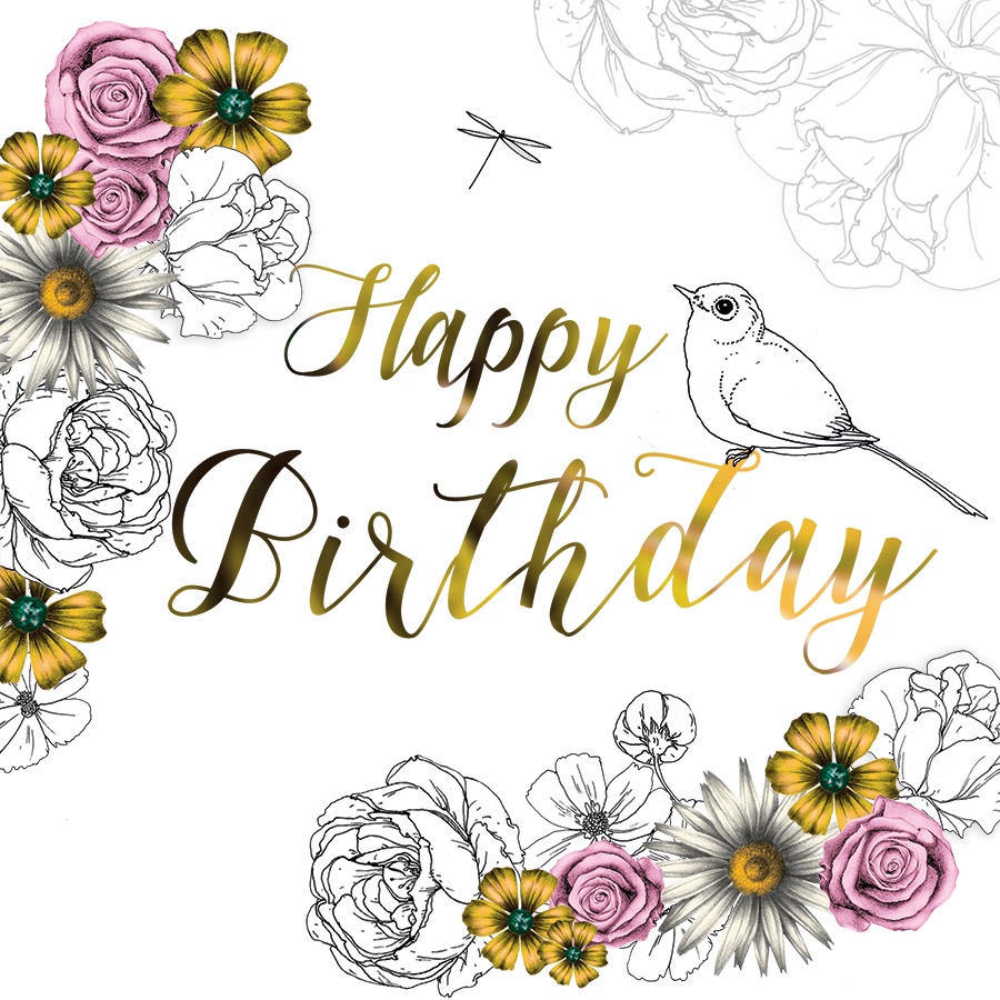 Karnet Swarovski kwadrat Urodziny kwiaty