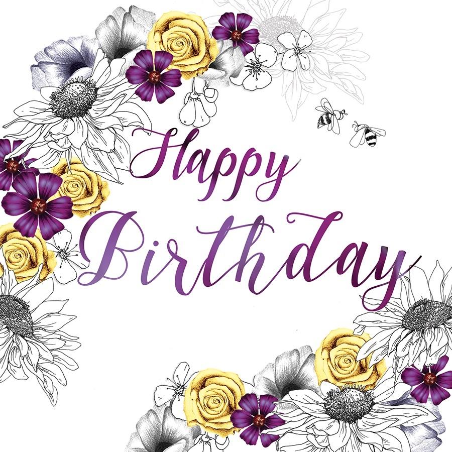 Opakowanie Karnet Swarovski kwadrat Urodziny kwiaty fioletowe i żółte