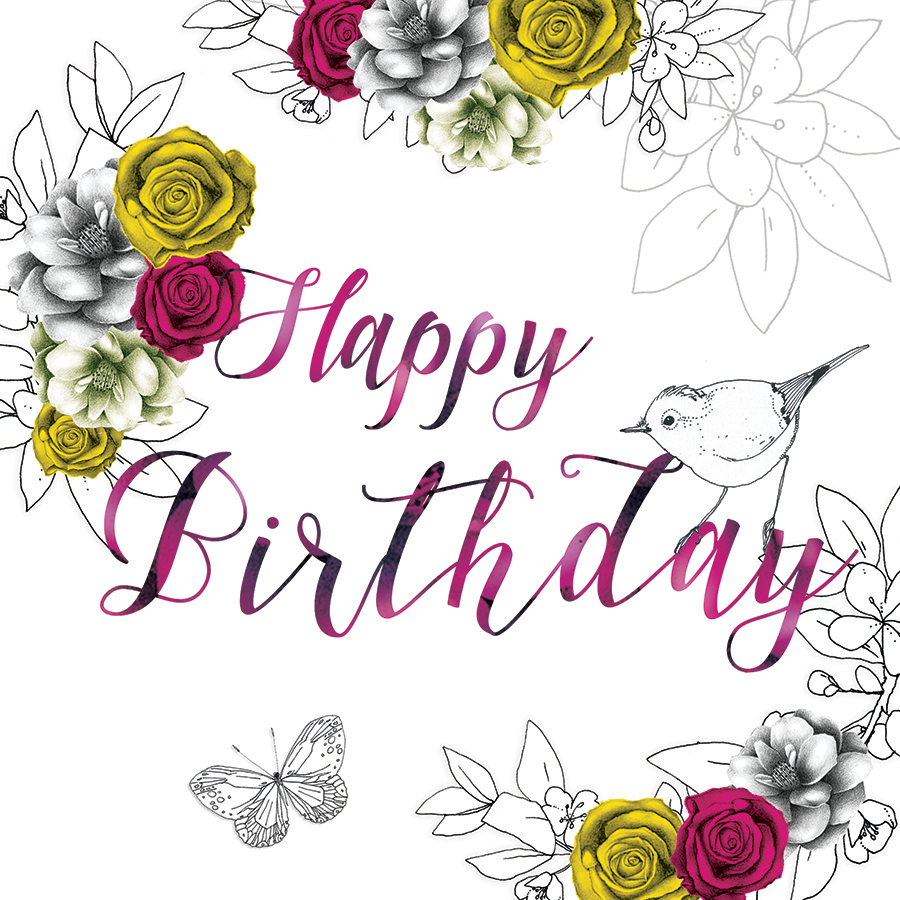 Karnet Swarovski kwadrat Urodziny kwiaty różowe i żółte róże