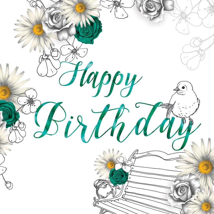 Karnet Swarovski kwadrat Urodziny kwiaty zielone i żółte