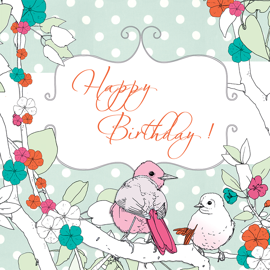 Karnet Swarovski kwadrat Urodziny ptaszki