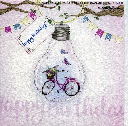 Karnet bez tekstu z kopertą, ręcznie robiony z kryształkiem Swarovski, Urodziny rower Żarówka.