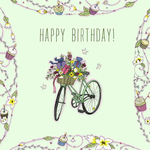 Karnet Swarovski kwadrat Urodziny rower z kwiatami CL1924