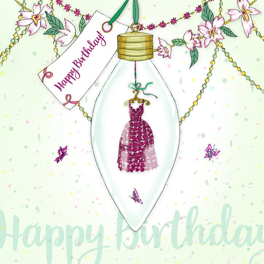 Karnet bez tekstu z kopertą, ręcznie robiony z kryształkiem Swarovski, Urodziny sukienka Żarówka