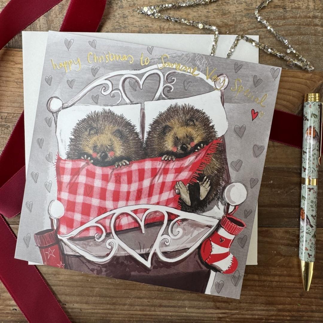 Opakowanie Karnet Święta kwadrat Jeże pod kocem