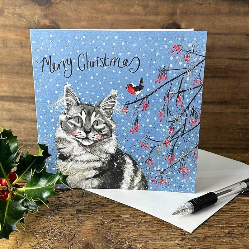 Karnet Święta kwadrat Kot i jarzębina