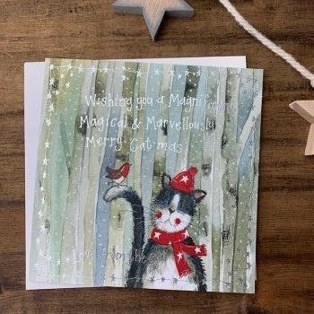 Karnet Święta kwadrat Kot w czapce i szaliku