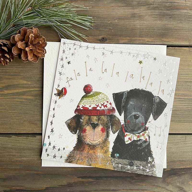Opakowanie Karnet Święta kwadrat Świąteczne psy La la la