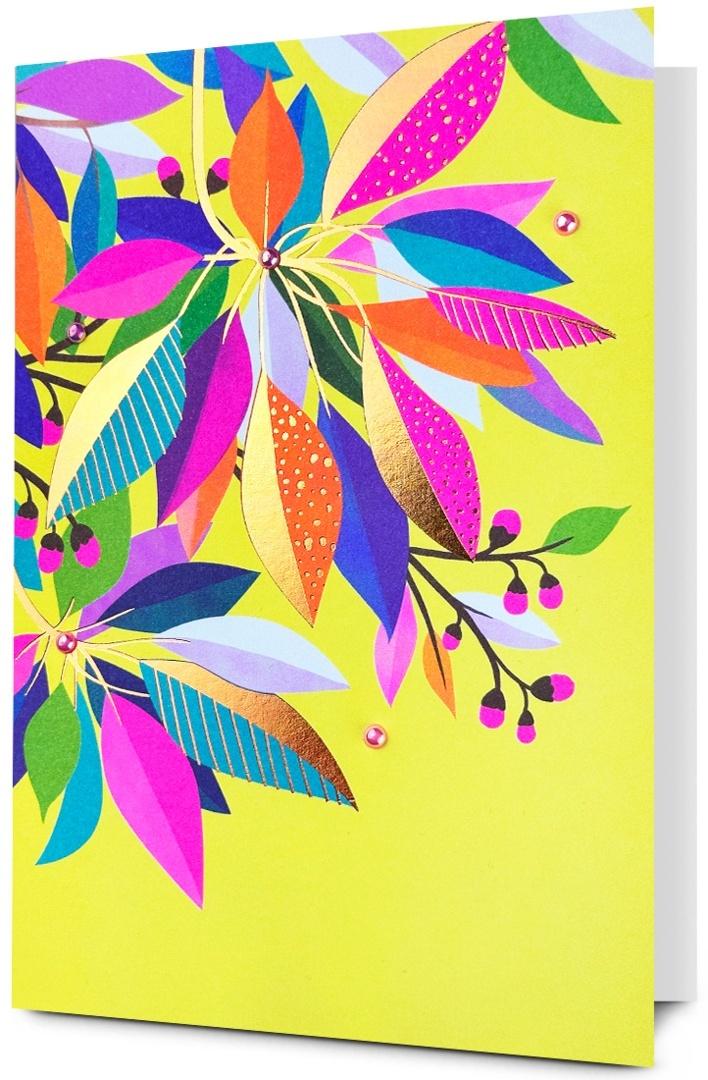 Kartka jest bogato i różnorodnie zdobiona (zależnie od wzoru: metaliczna folia, lakier perłowy,