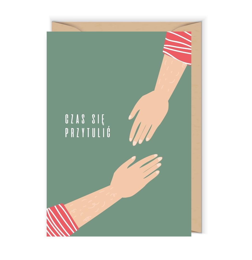 Otwierana kartka, pusta w środku, wykonana na papierze (z certyfikatem EFC) z wyraźnie widoczną fakturą. W zestawie ekologiczna koperta.