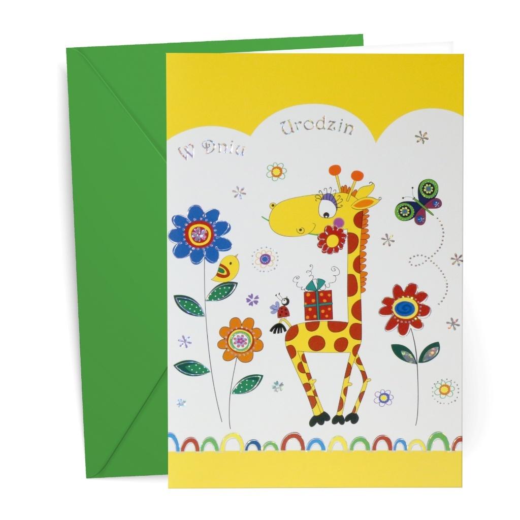 Kartka z kopertą, z życzeniami na urodziny. Opakowana folią open.