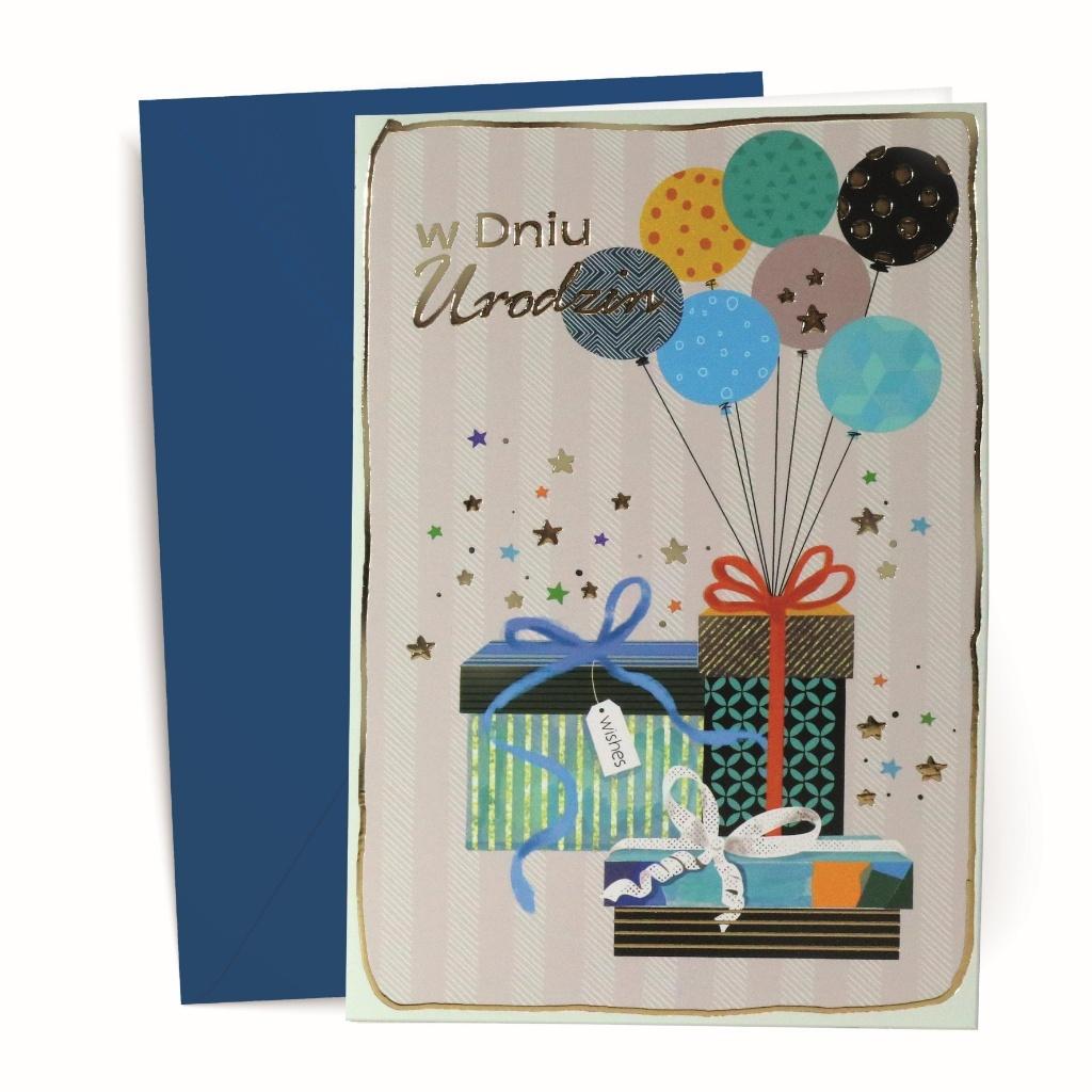 Kartka z kopertą, z życzeniami urodzinowe. Opakowana folią open.