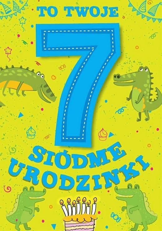 Kukartka Karnet Passion Premium PR-292 Kartka z życzeniami w dniu 7. urodzin z motywem krokodyla z powodzeniem stanie się piękną pamiątką z wyjątkowego dnia bliskiej Ci osoby. Produkt odznacza się kreatywnym motywem, a w środku zawiera krótkie i pomysłowe życzenia wraz z miejscem na podpis. Sprzedawany w zestawie z kolorową kopertą. Wyróżnij swój prezent dzięki wzbogaceniu go o wyjątkową kartkę z życzeniami od marki Kukartka!