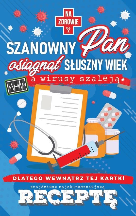 Karnet JCX z receptą to wyjątkowy pomysł na sprawienie obdarowanemu nim wesołej i niebanalnej niespodzianki. Wykonane z wysokiej jakości grubego papieru o gramaturze 350g i uszlachetnione dającym połysk lakierem UV. Wewnątrz karnetu znajduje się dedykowana recepta wzorowana na oryginalnym druku, którą wypełniają goście. Oryginalne i wesołe teksty zaskoczą każdego jubilata i z pewnością wywołają uśmiech na jego twarzy. Karnet może być idealnym dodatkiem do każdego prezentu. Karnet zawiera również humorystyczne życzenia.