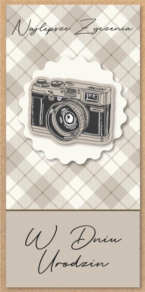 Karnet okolicznościowy z kopertą i życzeniami w środku.