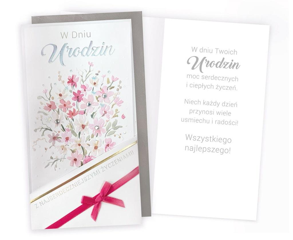 Każda kartka w kolekcji Passion Moments to małe arcydzieło - wyjątkowe i niepowtarzalne, piękne wizualnie. Kartki PM są bardzo bogato zdobione, a jednocześnie skromne i stylowe, cały efekt tkwi w detalach i doskonałym wykonaniu. W zależności od wzoru, na kartkach znajdują się dekoracje ze złotej, srebrnej, perłowej lub holograficznej folii, a także doklejki biżuteryjne, kokardki, brokat, laserowe wycięcia, wstążeczki i inne dodatki. Wnętrze karnetu to zawsze atrakcyjna grafika i tekst życzeń. Kartki mają w komplecie dopasowaną kopertę. Cechy szczególne: zdobienie: przynajmniej dwie folie (metaliczne/perłowe/holograficzne), brokat, elementy doklejane, wycięcia laserowe, wstążeczki - w zależności od wzoru, wnętrze: z delikatną grafiką, wyjątkowe życzenia w środku, w komplecie: dopasowana kolorystycznie koperta, okazja: urodziny. Wymiary karnetu po złożeniu: 11,4 x 21,5 cm.