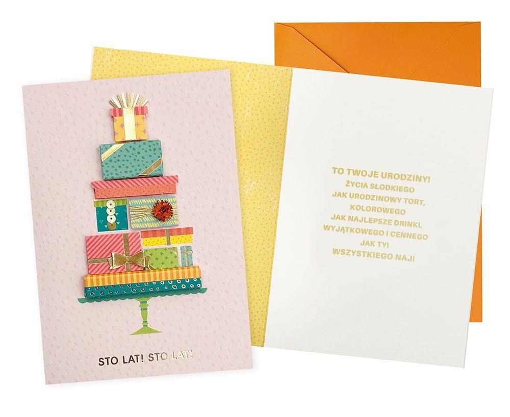 Karnet SCH-006 "W dniu urodzin" Kartka B6 z ozdobnej serii Signature Cards - nieduża, ale robi wrażenie dzięki atrakcyjnej kolorystyce i ciekawym zdobieniom. Cechy szczególne: wielkość: B6, 16.6 x 11.7 cm po złożeniu, koperta: dopasowana w zestawie, zdobiona metaliczną folią zdobienia: kolorowe, różnorodne, bogate (w zależności od wzoru: przyklejane przestrzenne dekoracje, brokat, metaliczne folie, tłoczenia itp.), okazja: urodziny