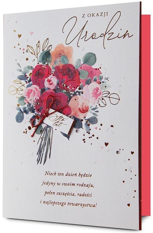 Kartka zawiera życzenia i kolorowy środek. W zestawie znajduje się koperta, kolorystycznie uzupełniająca się z kartką.