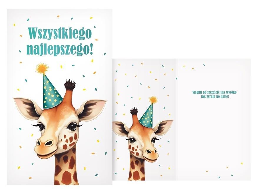 Karnet urodzinowy z tekstem. Papier: papier pocztówkowy 240 g Karnet jest zafoliowany, sprzedawany jest w zestawie z kopertą.