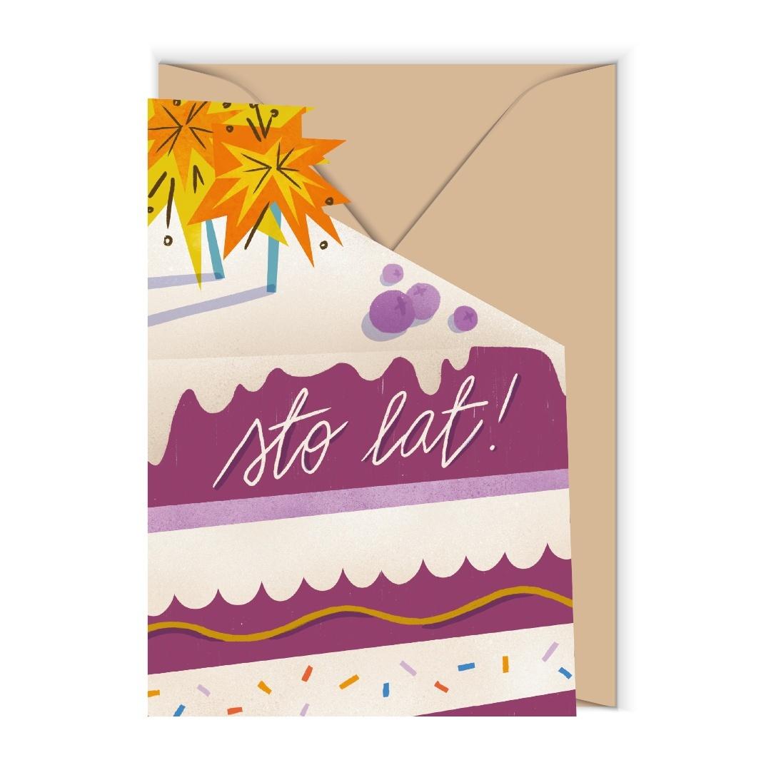 Unikalna kartka okolicznościowa cięta po obrysie, przedstawiająca kawałek tortu idealna na urodziny, jubileusz czy słodkie podziękowania. Projekt Justyny Frączek łączy oryginalny design z dbałością o detale. Kartka została wykonana z wysokiej jakości papieru ekologicznego o dużej gramaturze, dzięki czemu jest trwała, estetyczna i przyjazna środowisku. Doskonały wybór dla osób poszukujących niebanalnych i eleganckich dodatków do prezentu.