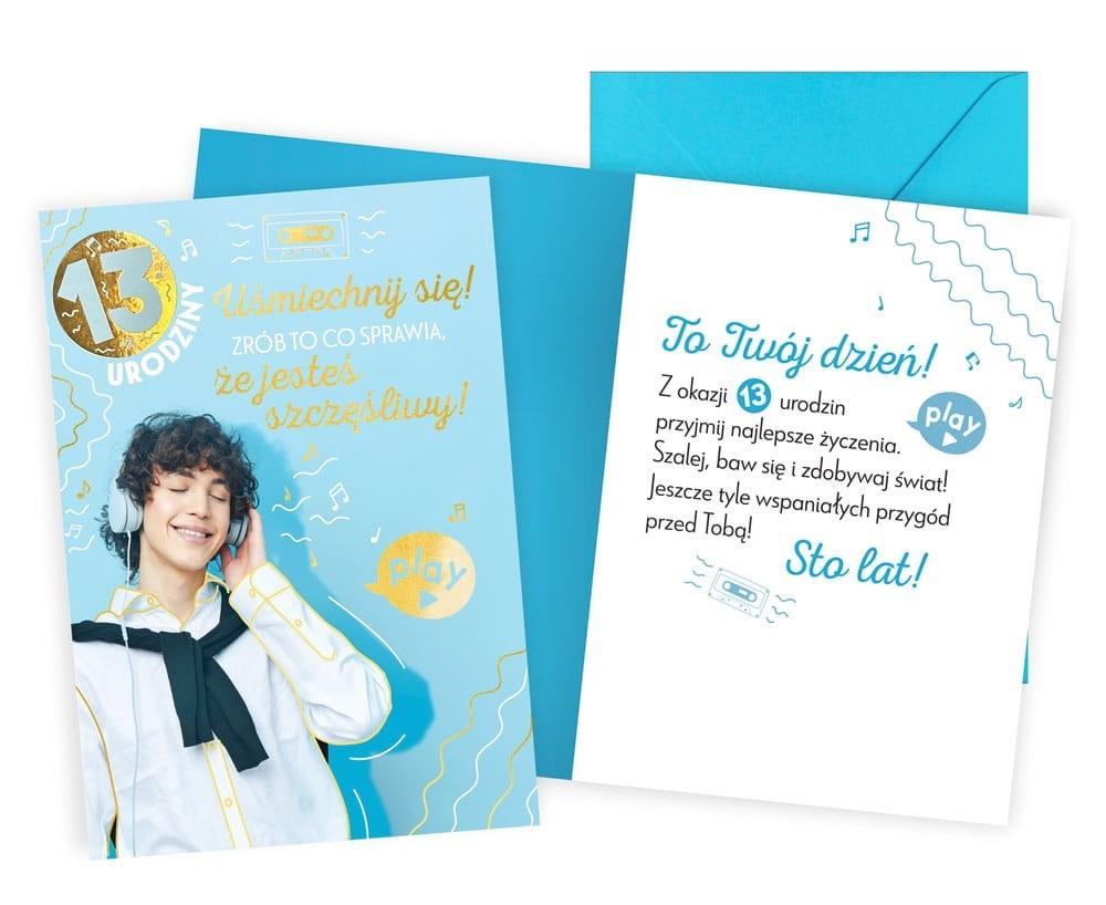 Opakowanie Karnet Urodziny 13 chłopiec