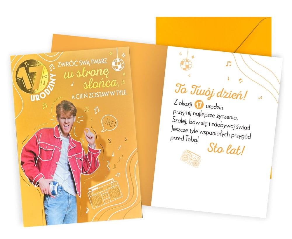 W powiększonym tzw. Angielskim formacie 140x190 mm. Wykonany z niezwykłą dbałością o szczegóły, zdobiony. Wewnątrz znajduje się tekst życzeń, a całość uzupełnia dopasowana kolorystycznie koperta. okazja: Urodziny