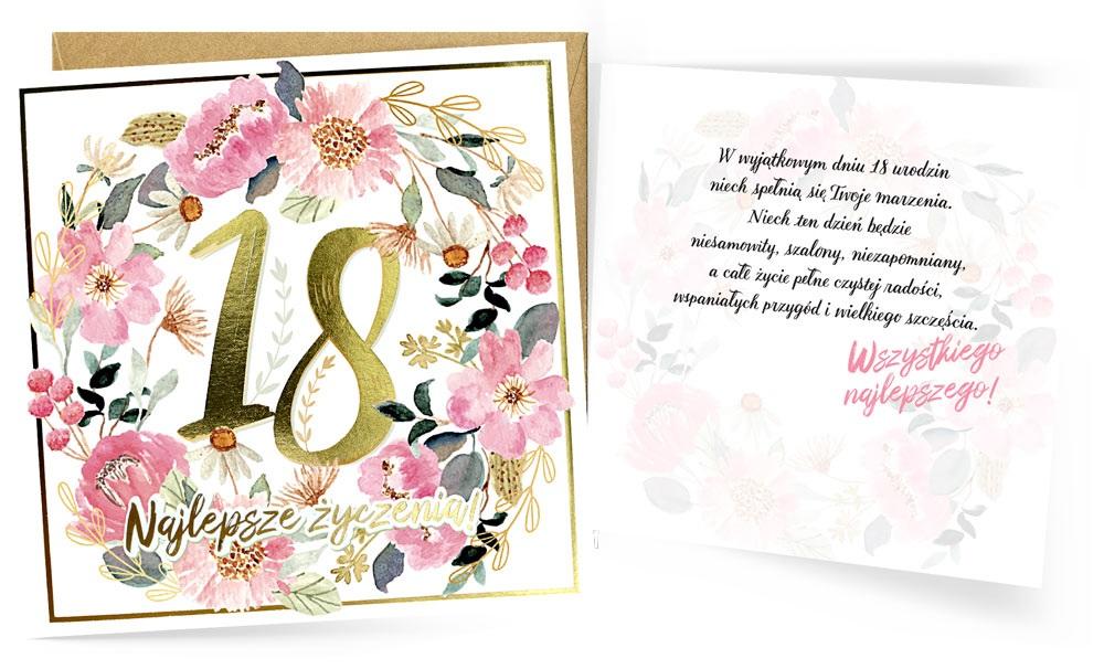 Kartka z serii Quadro to idealny pomysł na pamiątkę osiemnastych urodzin. Kartki wyróżniają się nowoczesnym designem przedstawionym w prostej formie. Środek każdej kartki posiada specjalnie dopasowane życzenia z miejscem na własną dedykację. Całość idealnie dopełnia koperta zaprojektowana z dbałością o każdy detal pasujący do kartki. Cechy szczególne: wielkość: 15.5 x 15.5 cm po złożeniu koperta: stylistycznie dopasowana do kartki zdobienia: połyskująca folia.
