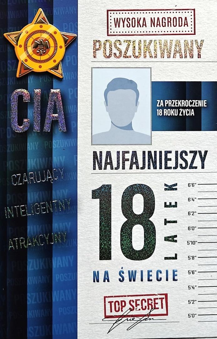 Opakowanie Karnet Urodziny 18 chłopak poszukiwany