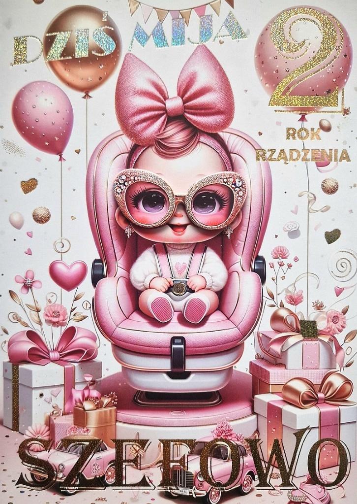 Karnet 3K to bogato zdobiony karnet z elementem naklejanym oraz złoceniem. Karnet to doskonały dodatek do prezentu. Karnet zawiera również zabawne życzenia.