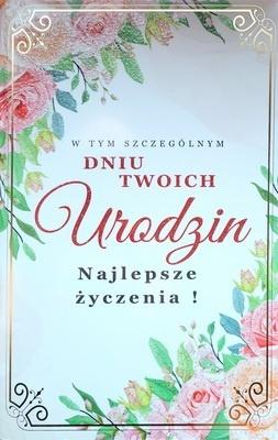 Klasyczny karnet z motywem kwiatowym. Uszlachetniony lakierem brokatowym oraz wysokiej jakości hotstampingiem (złocenie). Karnet zawiera życzenia i kopertę.