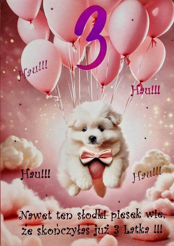 Karnet 3K to bogato zdobiony karnet z elementem naklejanym oraz złoceniem. Karnet to doskonały dodatek do prezentu. Karnet zawiera również zabawne życzenia.
