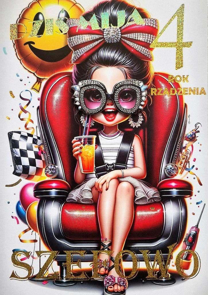Karnet 3K to bogato zdobiony karnet z elementem naklejanym oraz złoceniem. Karnet to doskonały dodatek do prezentu. Karnet zawiera również zabawne życzenia.
