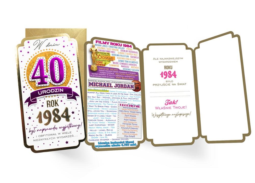 Kartki z serii Roczniki Passion Moments to zdobione kartki, w których w środku znajdują się ciekawe wydarzenia z danego roku. Na kartce znajdują się dekoracje ze złotej, srebrnej, perłowej lub holograficznej folii, a także doklejki biżuteryjne, kokardki, brokat, laserowe wycięcia, wstążeczki i inne dodatki. Wnętrze karnetu to zawsze atrakcyjna grafika i tekst życzeń. zdobienie: przynajmniej dwie folie (metaliczne/perłowe/holograficzne), brokat, elementy doklejane, wycięcia laserowe, wstążeczki - w zależności od wzoru, wnętrze: kolorowe, z delikatną grafiką, wyjątkowe życzenia w środku, w komplecie: dopasowana kolorystycznie koperta