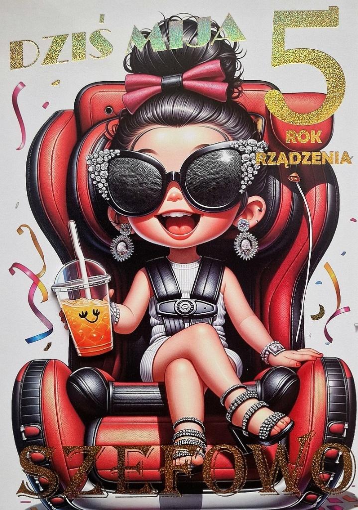 Karnet 3K to bogato zdobiony karnet z elementem naklejanym oraz złoceniem. Karnet to doskonały dodatek do prezentu. Karnet zawiera również zabawne życzenia.