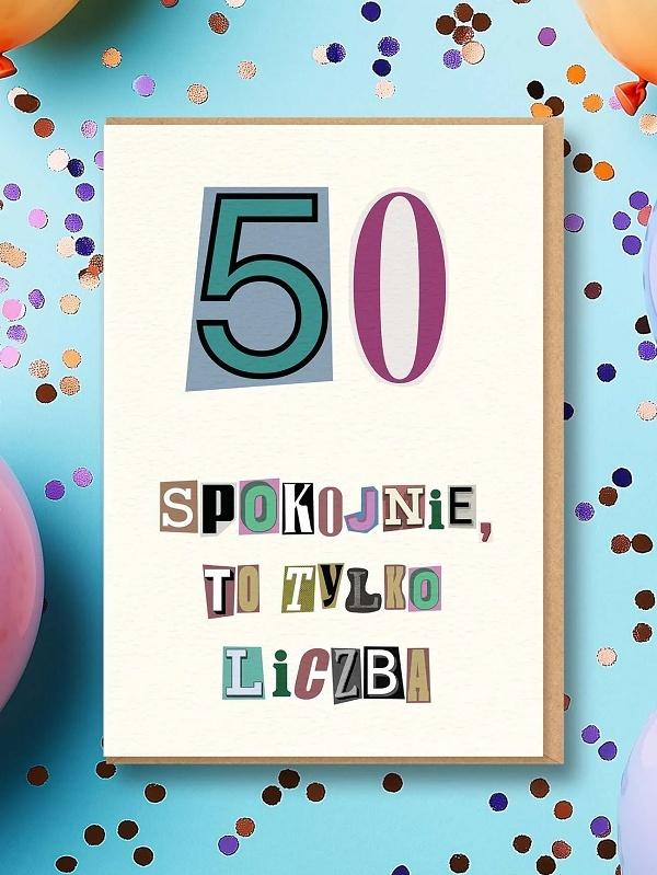 Kartka urodzinowa SPOKOJNIE, TO TYLKO LICZBA / 50 to doskonały prezent na 50. urodziny dla mamy, taty, przyjaciela lub współpracownika. Zabawna i pozytywna, sprawdzi się jako kartka urodzinowa z humorem, która rozładuje atmosferę przy torcie i pokaże, że pięćdziesiątka to dopiero początek najlepszych lat.