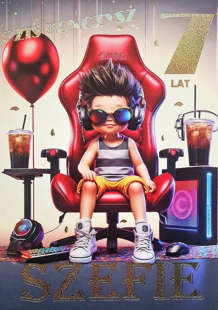 Karnet 3K to bogato zdobiony karnet z elementem naklejanym oraz złoceniem. Karnet to doskonały dodatek do prezentu. Karnet zawiera również zabawne życzenia.