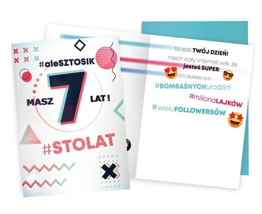 Karnet Dream Cards Plus "Urodziny 7" w powiększonym tzw. Angielskim formacie 140x190 mm. Kartka z ozdobnej serii Dream Cards Plus na siódme urodziny robi wrażenie dzięki atrakcyjnej kolorystyce i ciekawym zdobieniom. To idealny wybór łączący przyjazną cenę z jakością. Cechy szczególne: wielkość: 145 x 195 cm po złożeniu kopertą, wnętrze: kolorowe, wyjątkowe życzenia w środku, w komplecie: dopasowana kolorystycznie koperta. zdobienia: różnorodne, bogate (w zależności od wzoru: przyklejane dekoracje, elementy biżuteryjne, odstawniki, brokat, metaliczne folie, tłoczenia itp.), okazja: urodziny, 7 urodziny