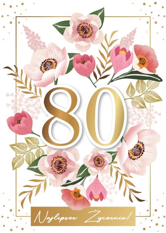 Karnet z okazji 80 urodzin z życzeniami i kopertą w środku.